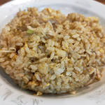 一般的なチャーハンの1.5倍くらいありそうなボリューム。羊叉焼は予想に反して脂っぽさがなく、味わいも淡白で存在感が薄い。これなら、豚でもいいのではないかと思ってしまう。