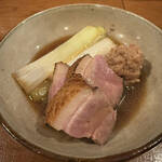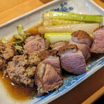 鴨ロース二切れにつくねとネギが入り、量的にもバランスがいい。ロースはミディアムレアの火加減で優しく味が染みている。つくねは野趣溢れる美味しさ。