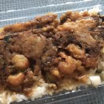 具材はとり天が4個も入り、他には、の海苔、オクラの天ぷらが入り、ごはんの量もしっかりなのでボリューム満点。