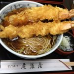 海老、椎茸、獅子唐、蓮根、南瓜という内容。蕎麦屋の天ぷらとして衣は薄めでサクサクと程よい食感に揚がっている。