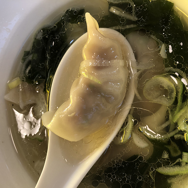 また、湯餃子という名前ではあるが、シンプルな味わいの塩味のスープに入っている。