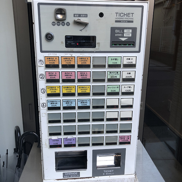 店頭に設置された自販機を見てみると小サイズのメニューも用意されていたので、これはいまの胃袋に丁度いいと思い、入ってみることに。