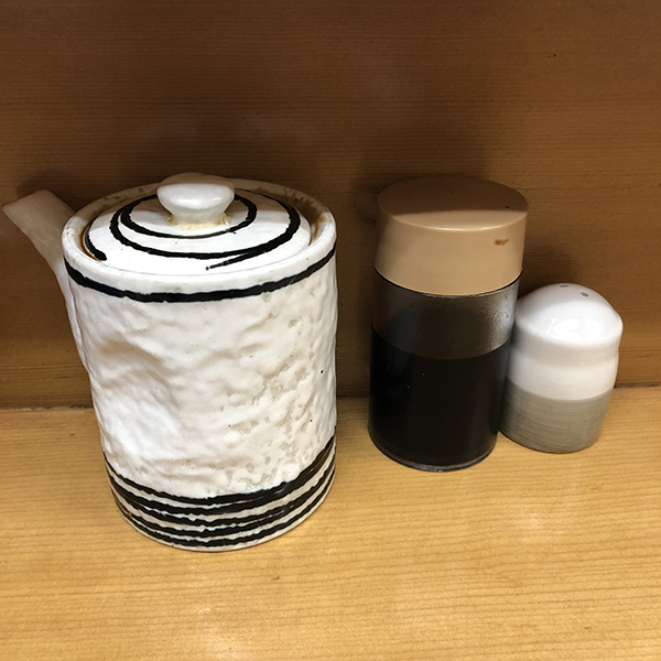 カウンターに並んだ調味料はソース、醤油、塩とごくごくシンプルである。