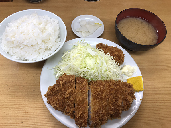 ロースかつ定食が770円と良心的な価格設定。カキフライやアジフライなどを単品で追加する事もできる。