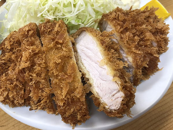 値段を考えると十分なボリューム感である。効率を考えてか、高めの温度の油でしっかりめに火を入れているようだ。それでも肉に火が入り過ぎと言う事はないが、余熱での加熱はごくわずかと推察される。