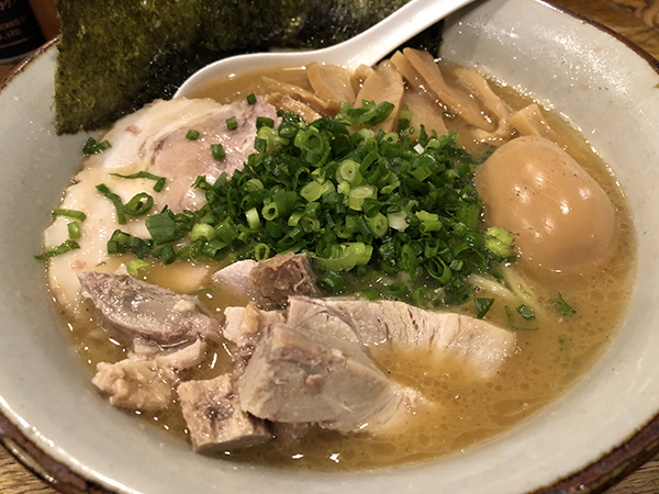 スープは豚骨魚介系で鰹出汁の支配力が強いが、円やかな口当たりで、優しい味わい。