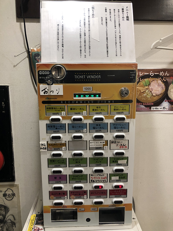 入口を入って直ぐ左手にある券売機で食券を購入。