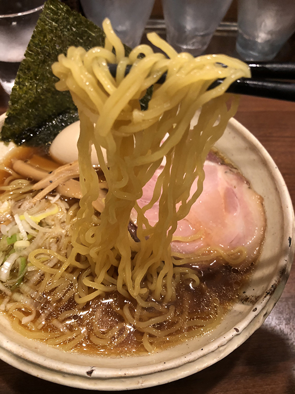 スープは青森産のシャモロックがベースにイワシ焼き干しを使った吟醸醤油を使ったすっきりとしたタイプ。ただし、醤油の香りが弱く、その分、塩気が立っているので、個人的には少し物足りない印象を受けた。