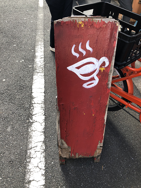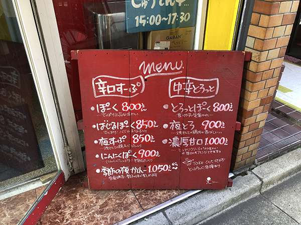お店の立て看板やメニューにも店名は見当たらず、入口のドアにわずかに確認できるだけだ。