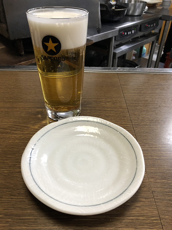 開店と同時に一斉にカウンターを陣取り、飲み物を注文。しばらくして料理の注文となるので、到底待つのは不可能に近いだけに運がよかった。