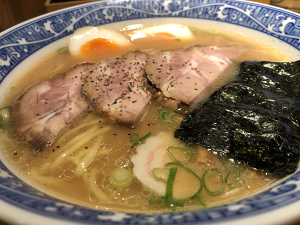 具材はチャーシューが3枚に煮玉子、のり、なると、ネギという構成でそつのない仕上がり。