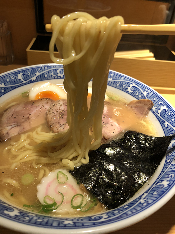 つるつると喉越しがいい麺。こちらもダブルスープ系のラーメンとしては太すぎず、スープとのバランスがいい。