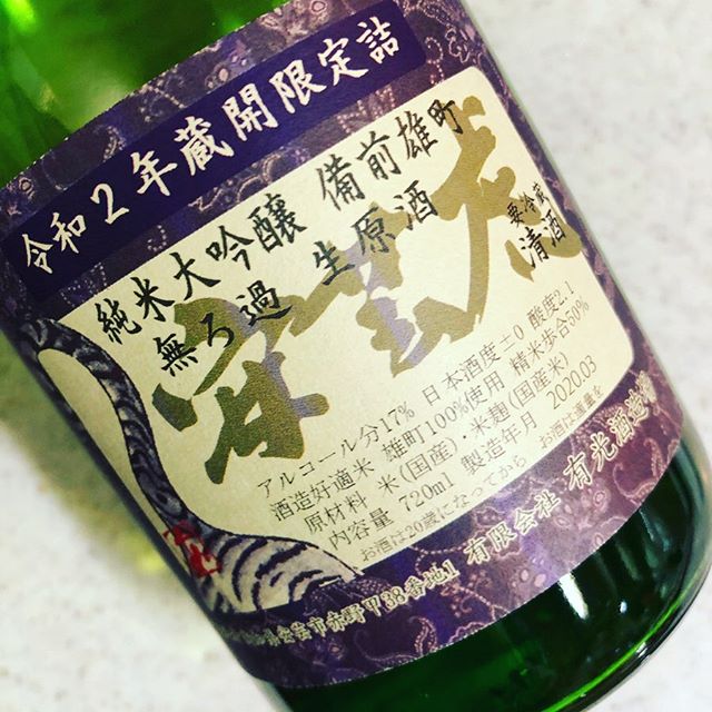 安芸虎 蔵限定 生原酒雄町純米大吟醸(有光酒造所/高知) 2020/3/23 日本酒, 純米大吟醸, 宅呑み シェアする ツイート 0 スポンサーリンク #日本酒 #純米大吟醸 #生原酒 #雄町100パーセント #精米歩合50パーセント #日本酒度0 #酸度2.1