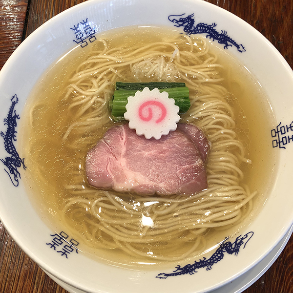 きれい盛り付けられた麺にチャーシュー、ほうれん草になるとが乗るだけというシンプルな構成だが、