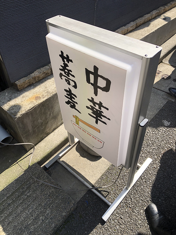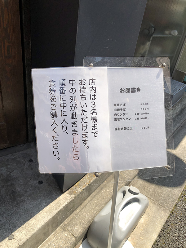 11:40に到着。外待ちは5名ほど。ちょうど、この立て看板の後ろくらいのポジションだ。