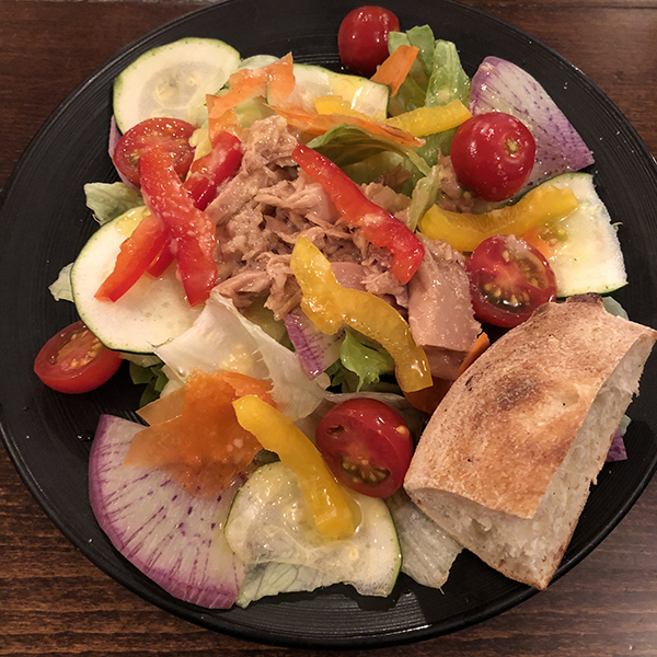 前菜としてサラダが供されるのだが、これが野菜の種類も豊富で、ポーションもあって嬉しい。