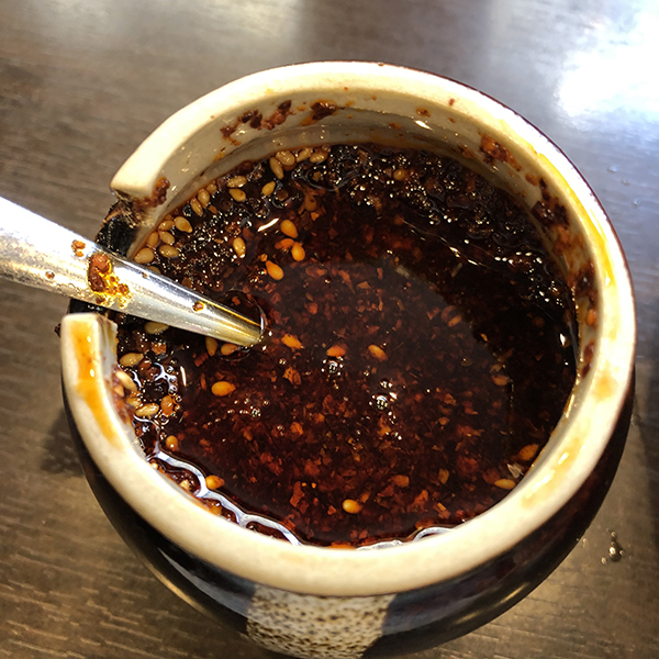 辛さはもう一段上でもいいが、卓上にはラー油がセットされているので、これを追加して丁度いい。