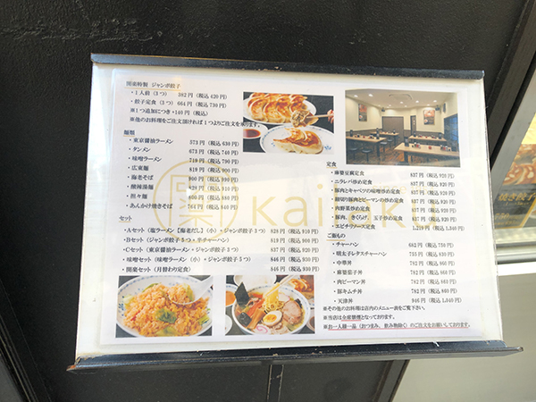 メニューはいわゆる街中華の様に各種麺類から炒め物までバラエティに富んでいる。