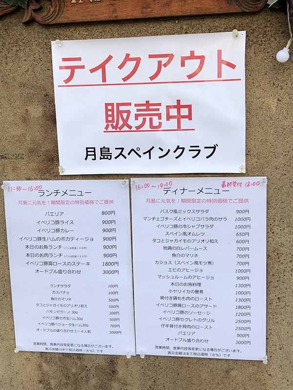 入口にまで行くと現在はテイクアウトのみの営業となっている。
