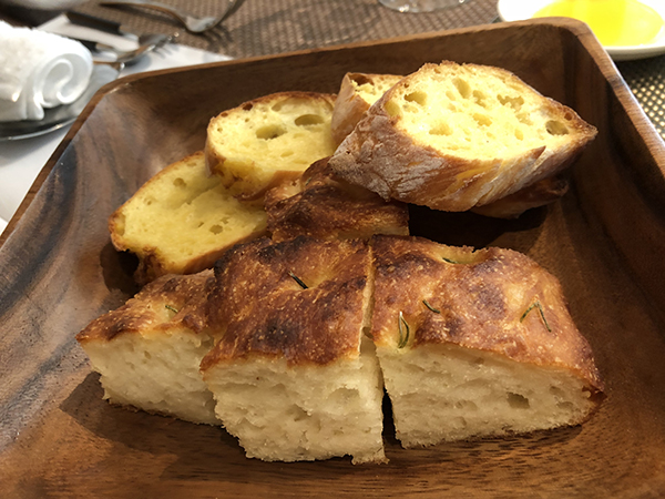 入口を入ると直ぐにオープンキッチンになっていて、その横を通り抜けると奥に客席が続いている。開放的な空間で肩肘張らずに食事が楽しめる。パスタランチのコースを注文。