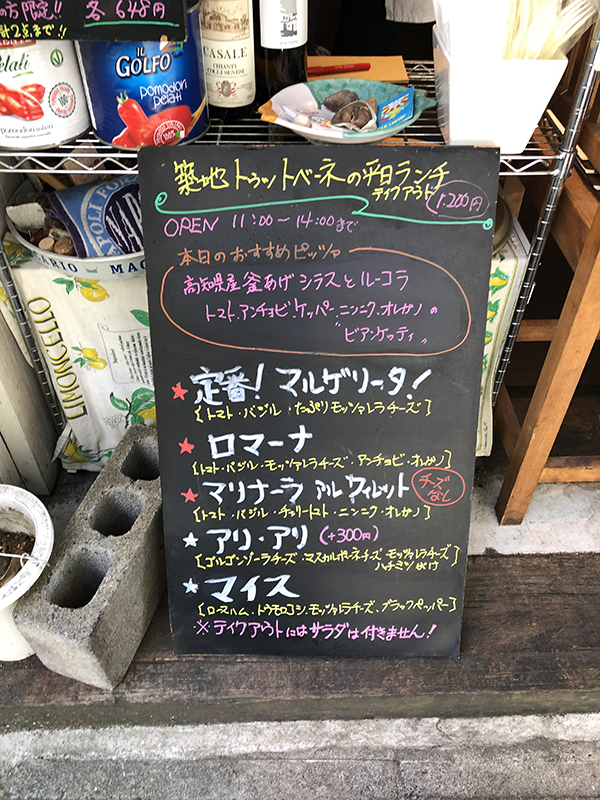 入口の立て看板のメニューを見てしばし思案。本日のおすすめピッツァに心惹かれつつ店内へ。