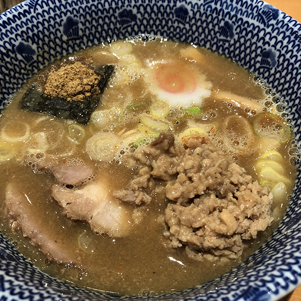 具材では豚ほぐしが効果的。つけ汁の旨味がより一層パワーアップする。一方、味玉は黄身が固まっていたのが残念。