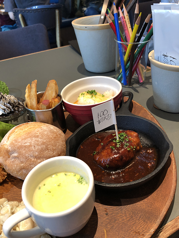 サクサク感があるエビフライ、ハンバーグ、とうもろこしとさつまいものスープなど、勘所を押さえた味付けで人気のほどが窺える。