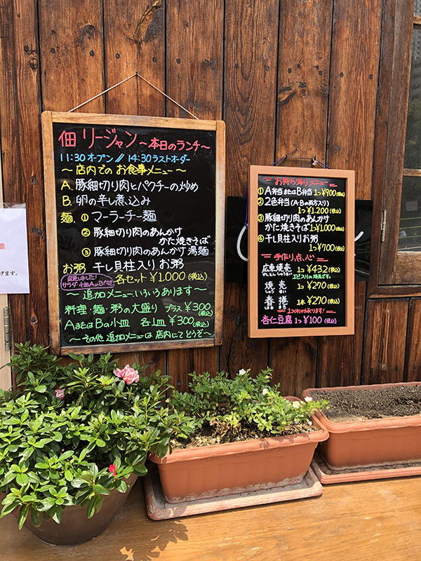 一品料理の小皿や半麺などメニューがある。お店の人に聞いてみると一品料理の小皿と半麺の組み合わせでもOKということだったので、各々1品ずつ注文することに。