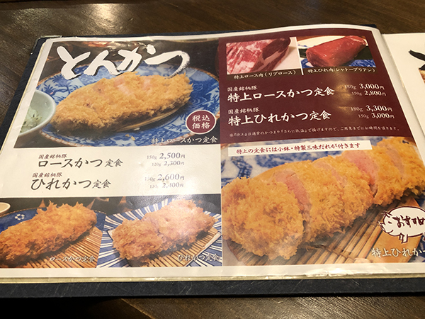 オーソドックスにこちらのメニューからロースかつ定食を注文。