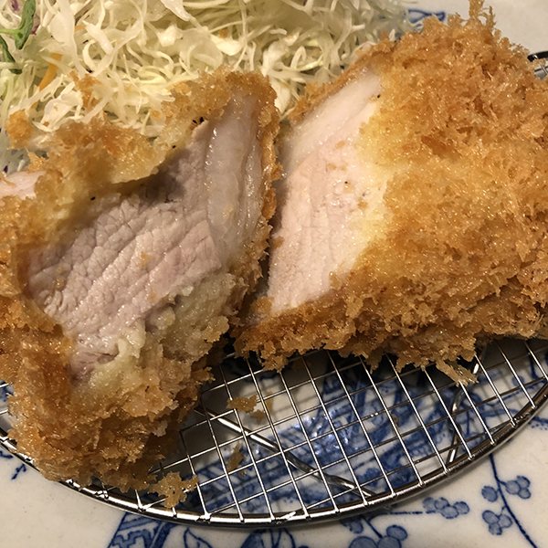かなりの肉厚で、揚げた後にしばらく休ませてから出している様子。