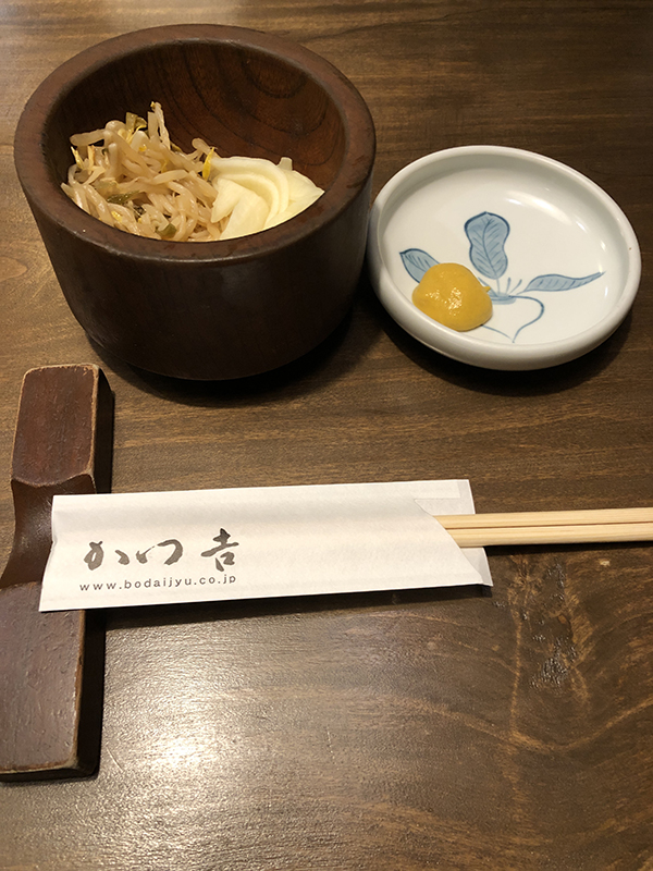 しばらくするとお漬物とソース用の皿が供された。