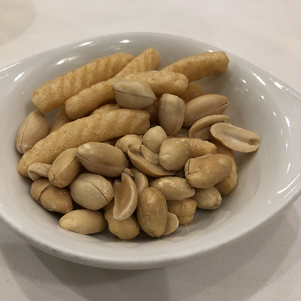 おつまみには豆類とかっぱえびせんの盛り合わせが供された。