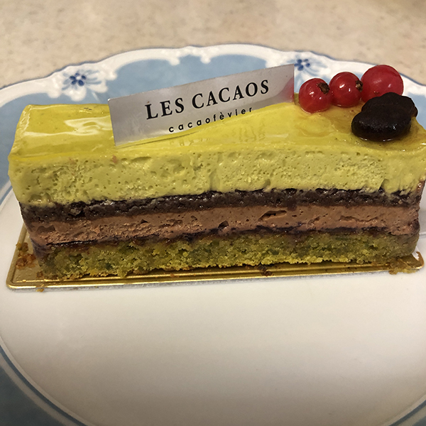 一番上のピスタチオクリームの下はチョコラの層になっていて、ふんわりトロトロの食感でとろけるほどど柔らかい。思ったよりもピスタチオの香りや甘みは控えめ。