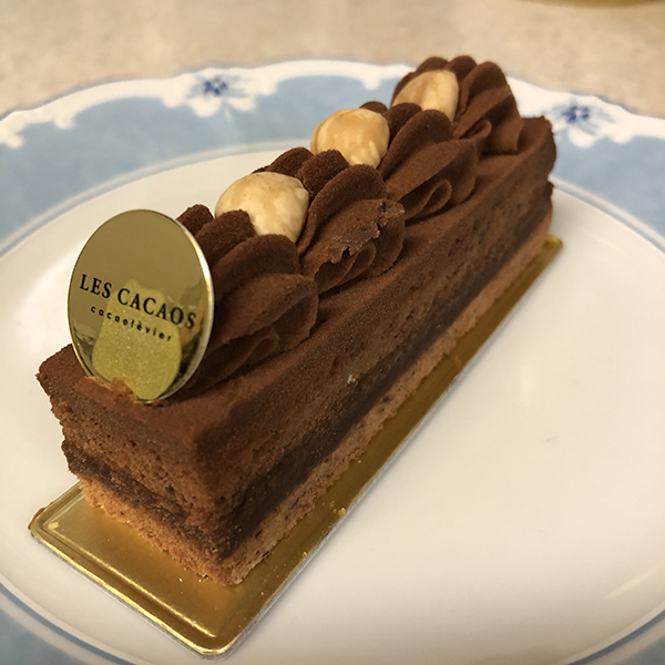 ヘーゼルナッツの生地にミルクチョコレートのクリームを合わせたケーキ。ヘーゼルナッツの生地のサクサクとしたクランキー状の食感がウイスキーのお供にいい。このケーキ自体とても美味しいが、ミルクチョコレートではなく、もう少しビターなチョコレートならよりウイスキーとの相性が良さそうだ。