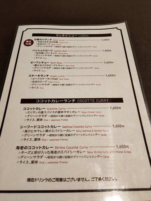 ハッシュドビーフやビーフシチューと言った洋食メニューも用意されているが、そのほとんどがココットカレー目当てにやってくる。