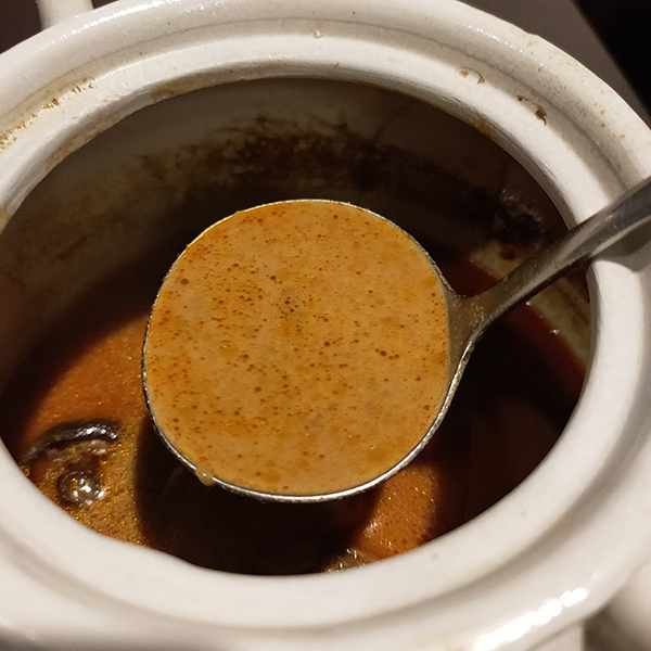 およそ10分ほどで供された。ルーが陶器の壺に入っているのが特徴だ。