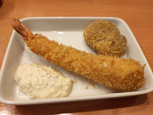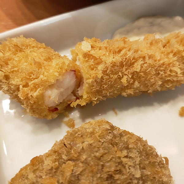 エビはプリプリの食感でこれまで頂いたエビフライの中でも屈指の存在。メンチカツは肉っ気たっぷりで食べ応えがあるが、この日の選択肢としてはカニクリームコロッケが正解だったかと少し後悔。