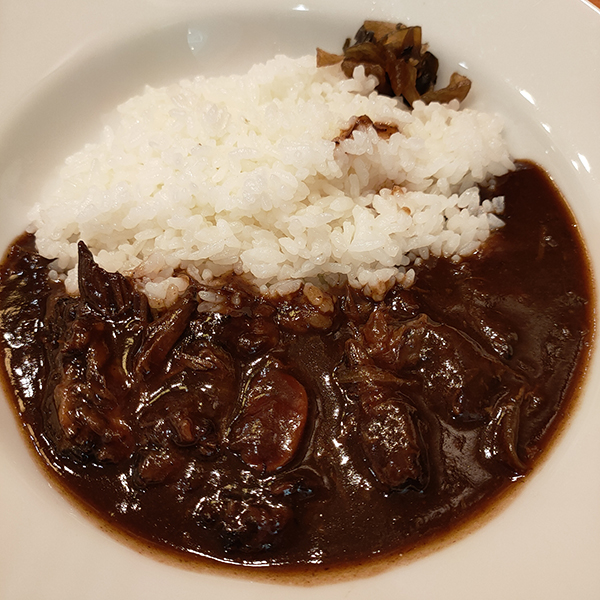しっかりと力強い味わいで、牛テールが入ることによってよりコクが増しているものと思われる。