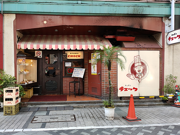 昔からある洋食店で、入口を入ると奥の方にも出入口があり、そちらはゲームセンターに直結しているという不思議な造り。店内はJの字型のカウンター席のみで、あまり寛げる雰囲気ではない。