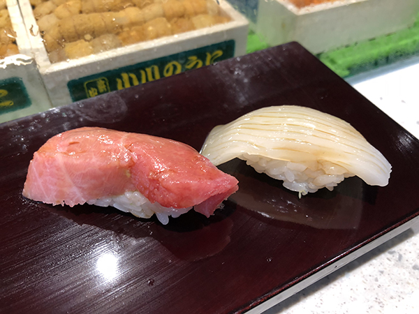 とは言え、どちらもネタの良さが光る。どのすしダネにも煮切りを塗って供してくれる。