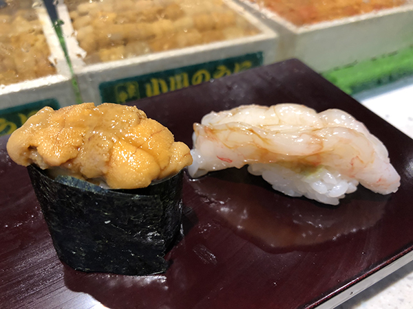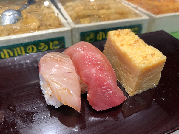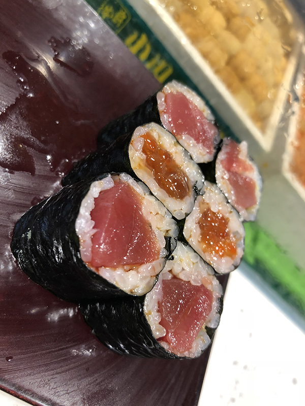 手前と奥が鉄火巻き。真ん中がいくらになる。