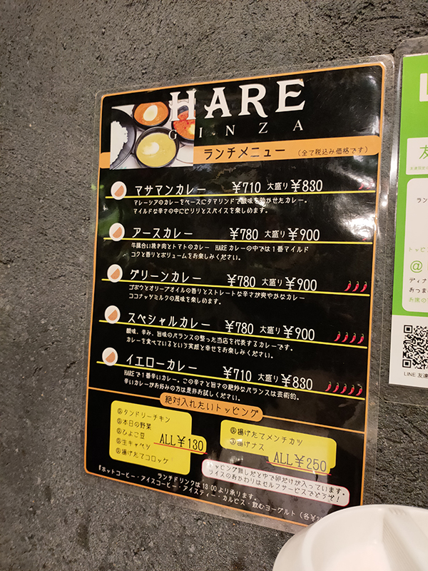 ただし、カレーだけだと玉子しかつかないとの事なので選んだカレーにトッピングを追加することになる。