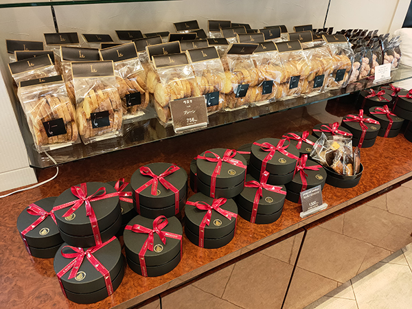入って左側のスペースではお土産ものの焼菓子、クッキー、マカロン、ショコラなどが各スペースに置かれている。それにしても凄いバリエーションだ。