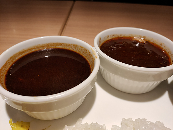 一方、コルマはこれまで頂いたものと少し印象が異なる。まずひと口目に感じる強い甘さである。スパイスの塩梅や辛さは変わらないと思うのだが、甘さが少し突出している。これは玉ねぎの炒め方によるものと思われる。嫌味な甘さではないもののバランス的に少し気になるところだ。