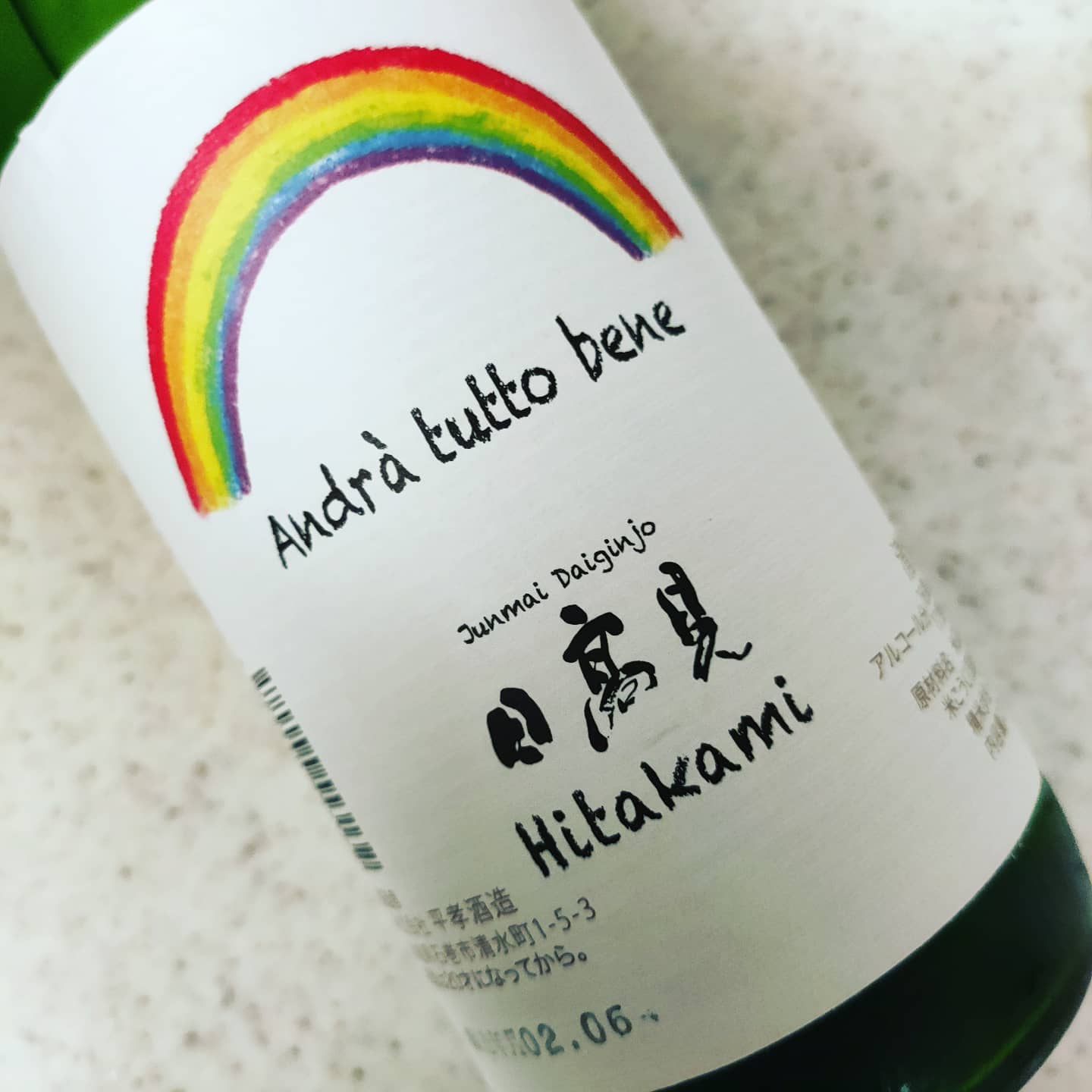 イタリアの子供たちが新型コロナウィルスで外出できない中、いらなくなったシーツに幸運をもたらすと言われている虹の絵と共に、Andrà tutto beneのスローガンを窓から外に掲げ、「明るいビジョンをもって皆で頑張ろう」と各地で広がっている運動に、東北大震災でさまざまな方々に助けてもらい元気づけられた「日高見」を醸す平孝酒造は共感し、新型コロナウィルスに絶対負けないと強い気持ちを込めて造った限定酒。