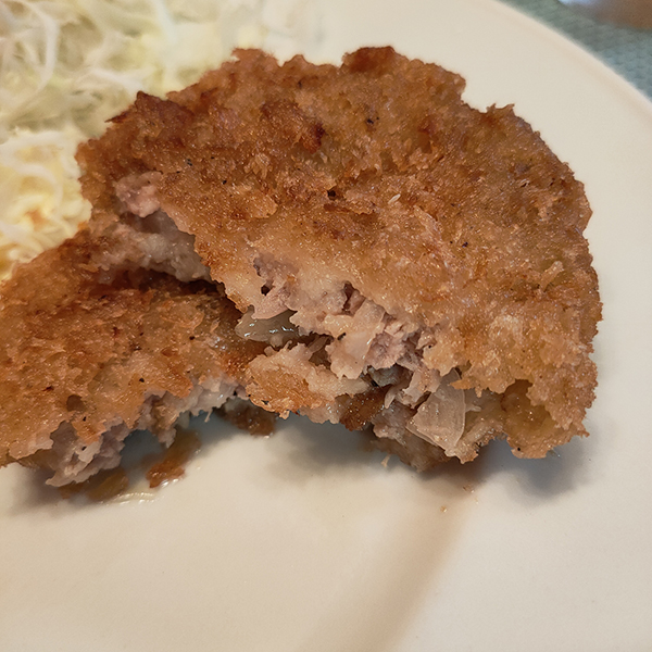 ご主人の優しいお人柄が感じられるメンチカツである。