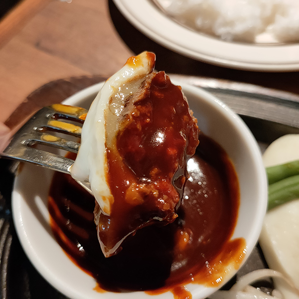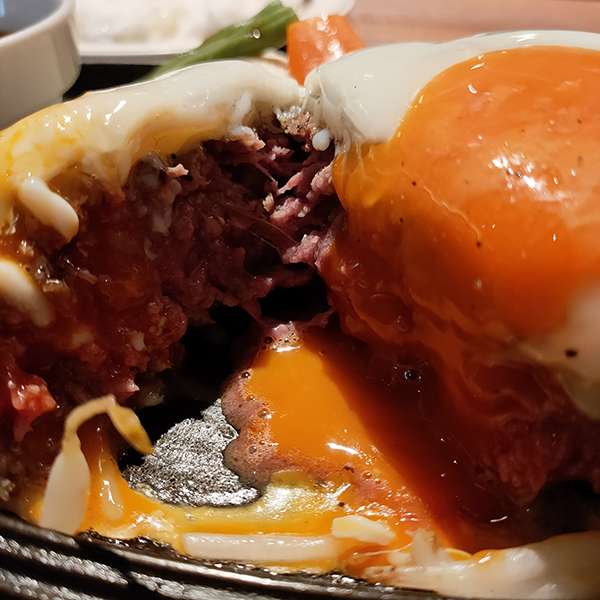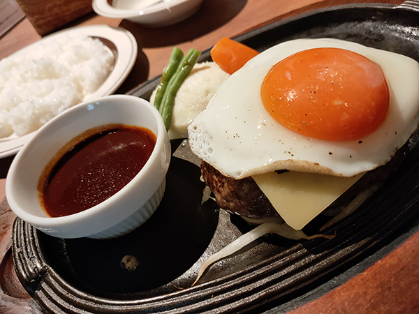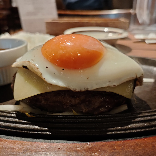 肉の旨味は十分だし、ソースも無難に着地している。肉を食べるという充足感は得られるし、絶妙に黄身が溶け出した目玉焼きも相乗効果になっている。