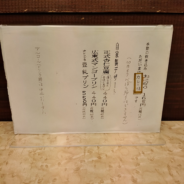 食券制ではないので、そのまま席に通される。最近では珍しいのでかえって新鮮だ。