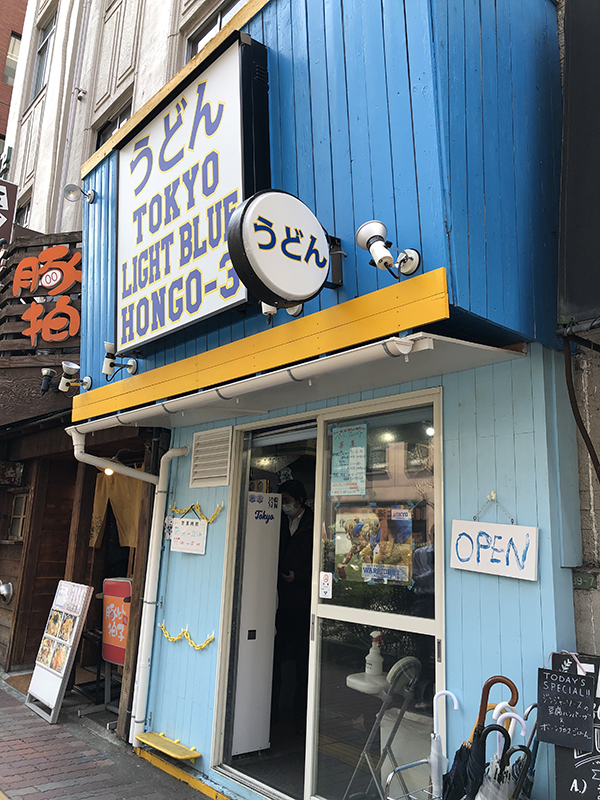 本郷三丁目駅からすぐの場所にある。こくわがたのリニューアルに伴い、店名が変わり、合わせて、マリンブルーの目にも鮮やかな佇まいに変貌を遂げた。