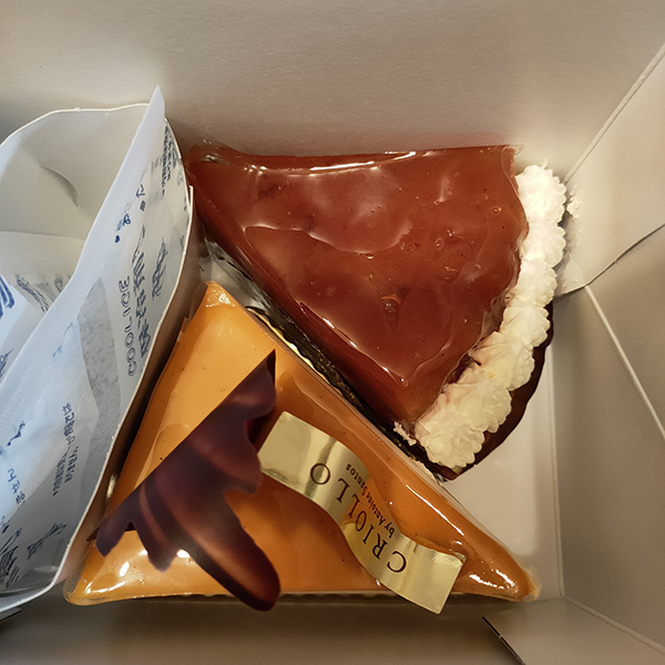 名物のチーズケーキはポーションが大きいの次回のお楽しみにして、今回は2種類のケーキを購入。